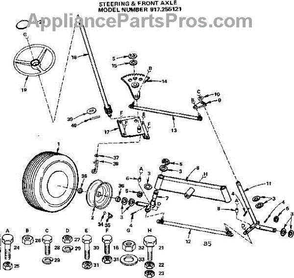 Parts for Craftsman 917255121: 36 Lawn Tractor / Steering & Front Axle Parts