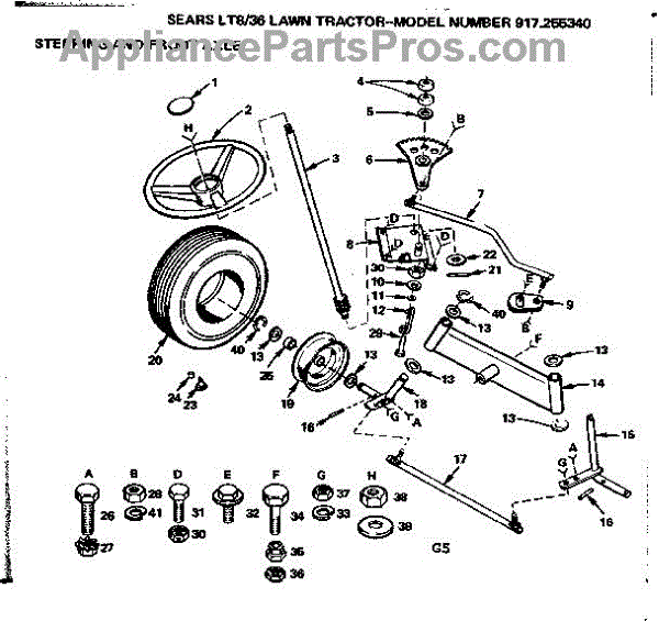 Parts for Craftsman 917255340: 36 Lawn Tractor / Steering And Front Axle Parts
