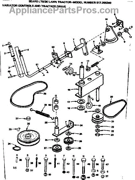 Parts for Craftsman 917255340: 36 Lawn Tractor / Variator Controls And Traction Drive Parts
