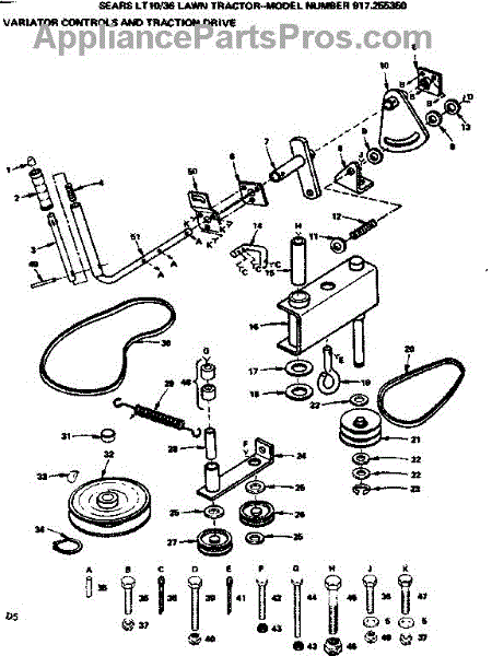 Parts for Craftsman 917255350: 36 Lawn Tractor / Variator Controls And Traction Drive Parts