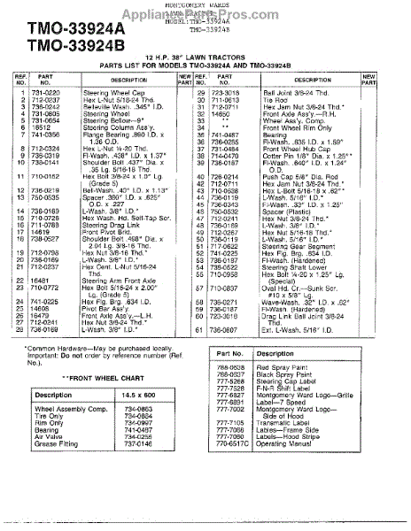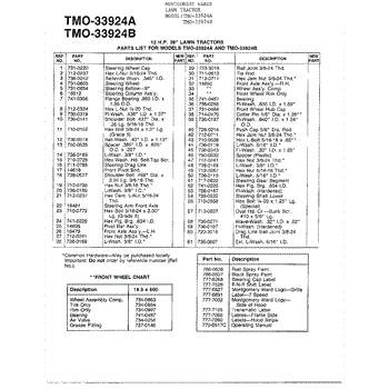 Parts for Mtd 33924B: 12Hp 38" Lawn Tractor / Wheel Chart Page 2 Parts