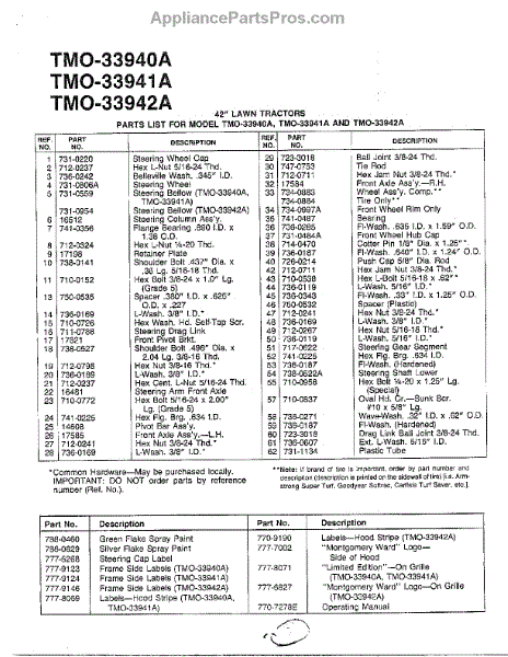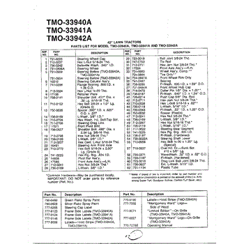 Parts for Mtd 33940A: 38" Lawn Tractor / Wheel Chart Page 2 Parts