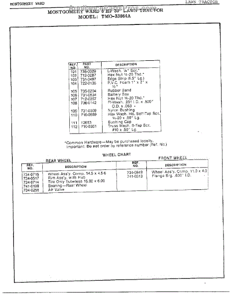 Parts for Mtd 33864A: 8 Hp 30" Lawn Tractor / Wheel Chart Page 3 Parts