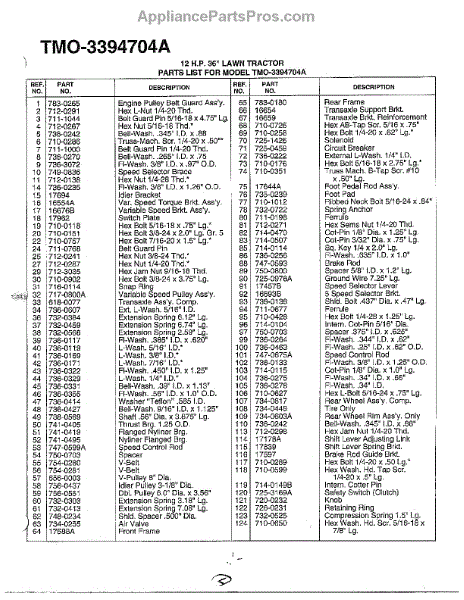 Parts for Mtd 3394704A: 12Hp 36" Lawn Tractors Page 2 Parts