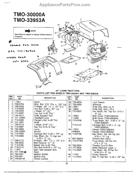 Parts for Mtd 33953A: 42" Lawn Tractors Page 2 Parts