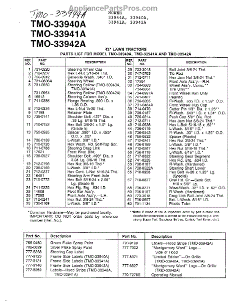 Parts for Mtd 33941A: 42" Lawn Tractors Page 3 Parts