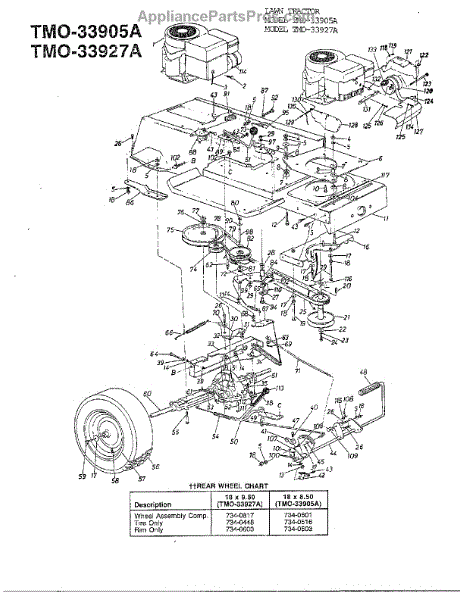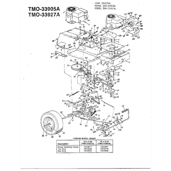 Parts for Mtd 33905A: 12Hp 38" Lawn Tractors / Wheel Chart Parts