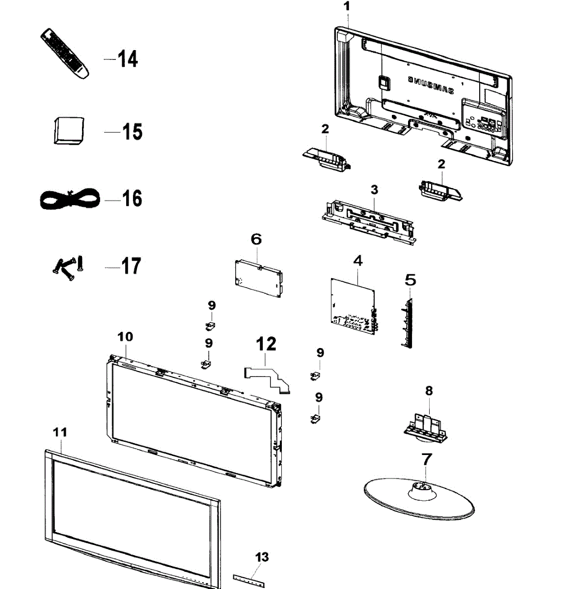 Self-tapping screw secures TV stands, back panels, and internal components. Replaces lost, stripped, or missing screws during TV assembly or repair.