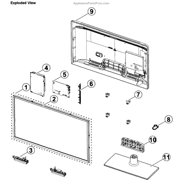 Self-tapping screw secures TV stands, back panels, and internal components. Replaces lost, stripped, or missing screws during TV assembly or repair.