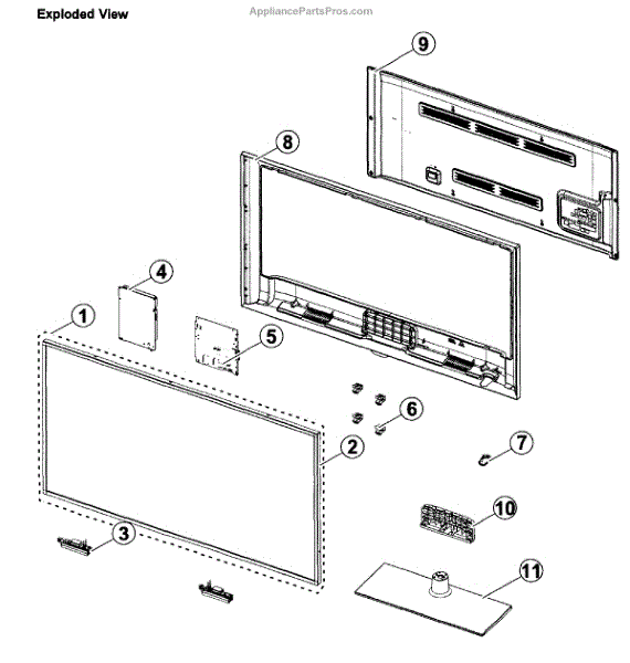 Self-tapping screw secures TV stands, back panels, and internal components. Replaces lost, stripped, or missing screws during TV assembly or repair.
