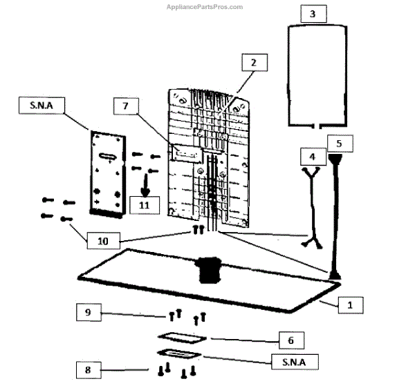 Self-tapping screw secures TV stands, back panels, and internal components. Replaces lost, stripped, or missing screws during TV assembly or repair.