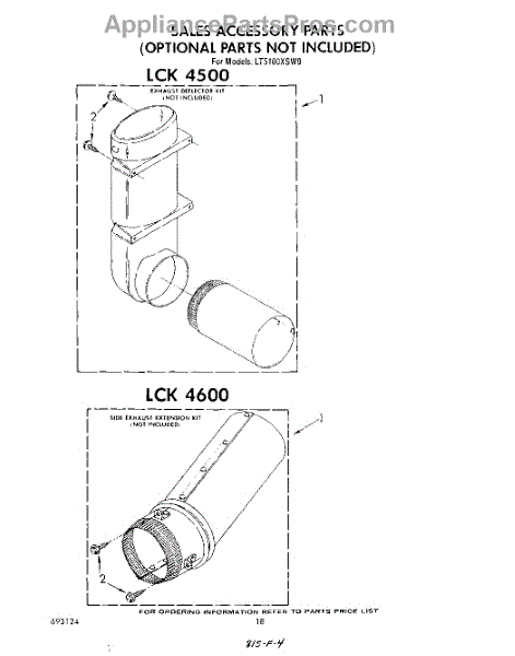 Parts for Whirlpool LT5100XSW0: 15 - Lck 4500 , Lck 4600 Parts