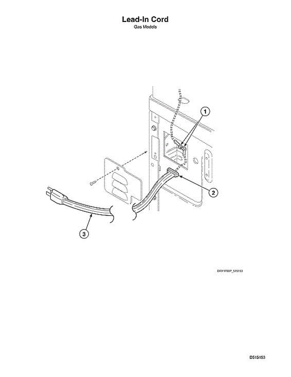 Parts for Speed Queen ADGE8RGS113TW01: Lead-In Cord Parts