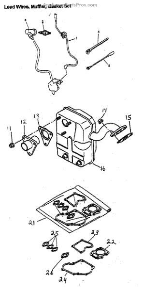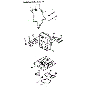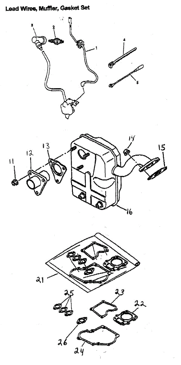 Parts for Generac GM82: Lead Wires / Muffler / Gasket Set Parts