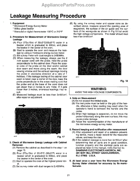 Parts for Samsung MW5620T/XAA: Leakage Measuring Procedure Parts