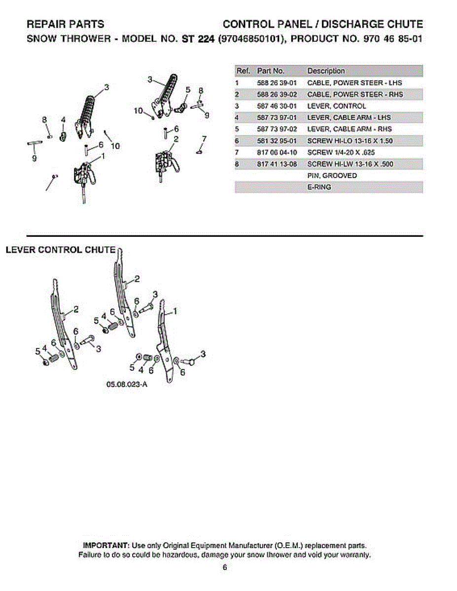 Parts for Husqvarna ST224-97046850101: Lever Control Chute Parts