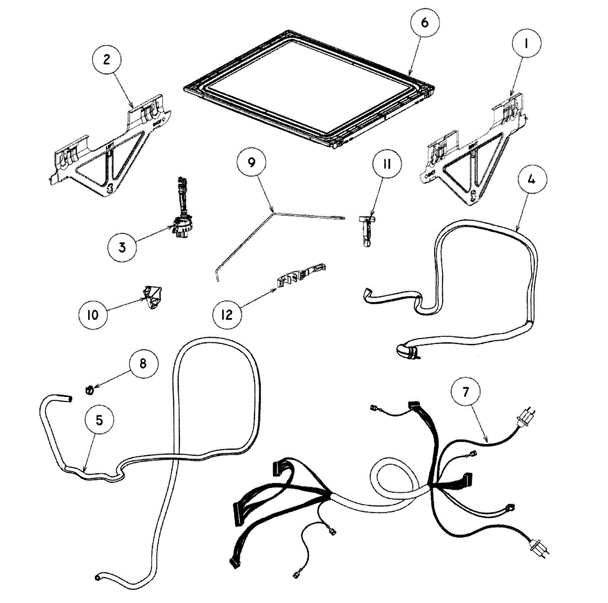 A lower chassis wiring harness that routes power and signals between the dishwasher base components and the control area, restoring proper electrical connectivity and reliable operation. What it does: