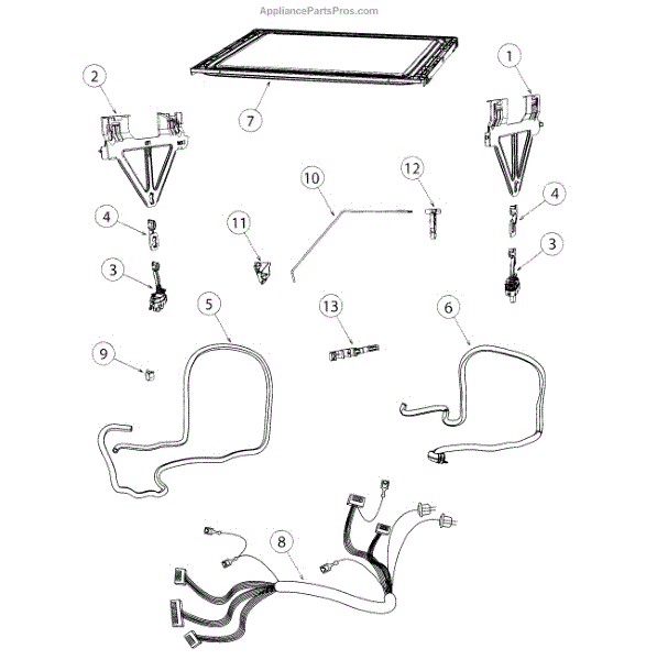 A lower chassis wiring harness that routes power and signals between the dishwasher base components and the control area, restoring proper electrical connectivity and reliable operation. What it does: