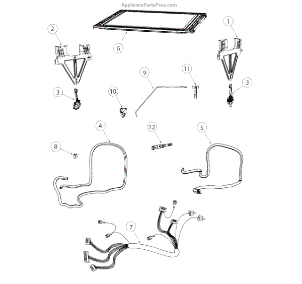 A lower chassis wiring harness that routes power and signals between the dishwasher base components and the control area, restoring proper electrical connectivity and reliable operation. What it does: