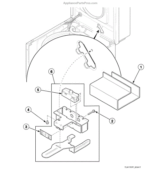 This molded drip shield protects the washer's lid switch assembly from water and detergent drips, helping preserve switch function and reduce moisture-related faults. Fits behind the console where the lid meets the cabinet. What it does