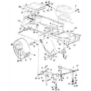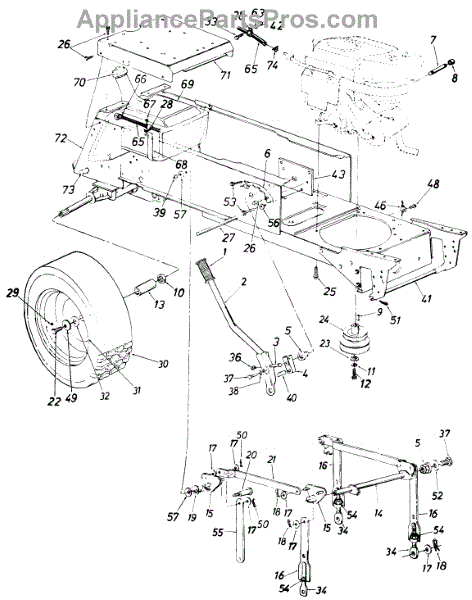 Flat washer for lawn mowers and tractors. Spreads load from bolts and screws to prevent damage. Replace if worn, cracked, or missing hardware.