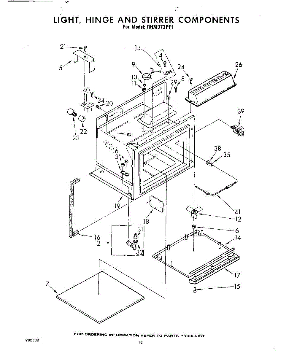 Parts for Whirlpool RHM973PP1: 12 - Light, Hinge And Stirrer Parts