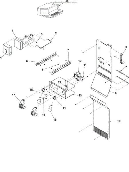 This ice maker cover shields the front of the ice maker assembly, protecting the module and moving parts from dust and accidental contact. Replacing a cracked or missing cover restores a clean, finished appearance and keeps components protected.