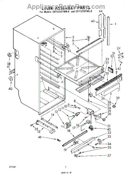 Parts for Whirlpool EET122DTWR0: 02 - Liner Assembly Parts