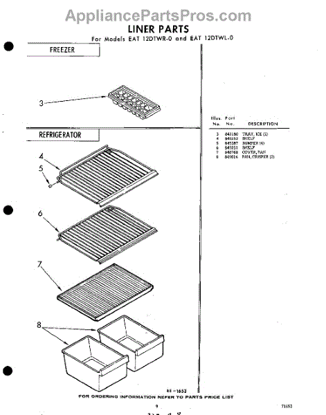 Parts for Whirlpool EAT12DTWR0: 09 - Liner (Continued). Parts