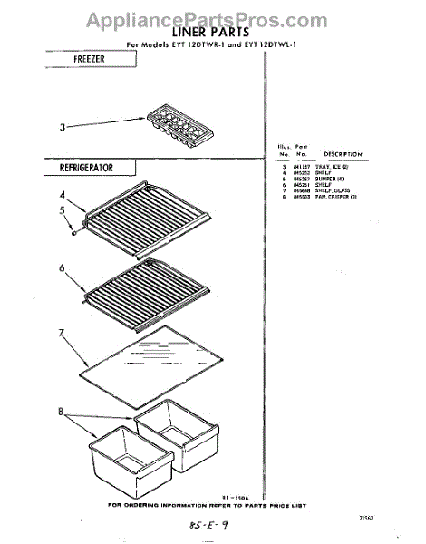Parts for Whirlpool EYT12DTWR1: 09 - Liner (Continued) Parts