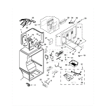 Connects ice maker to freezer wiring. Replace if wires are pinched, damaged, or connector is broken. Installs between ice maker and freezer cavity wall.