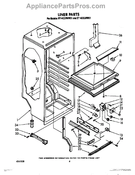 Parts for Whirlpool ET14CCLWN01: 04 - Liner, Lit / Optional Parts