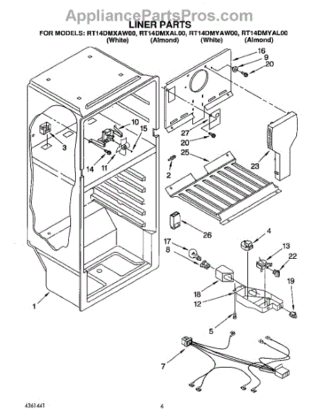 Parts for Whirlpool RT14DMXAL00: 04 - Liner, Lit / Optional Parts