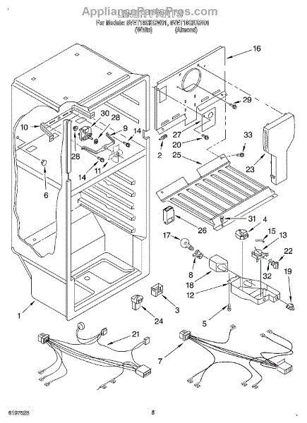 This freezer wire harness links the refrigerator's control system to components inside the freezer compartment. Replacing a compromised harness restores reliable electrical connections and can resolve intermittent or dead freezer functions caused by burned, broken, or corroded wiring.