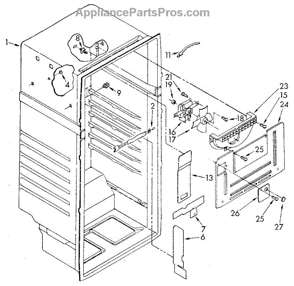 This hole cover seals an access/opening in the refrigerator evaporator housing to help maintain proper airflow and prevent moisture or frost from entering the cabinet. A simple replacement that restores the evaporator enclosure's intended seal. What it does: