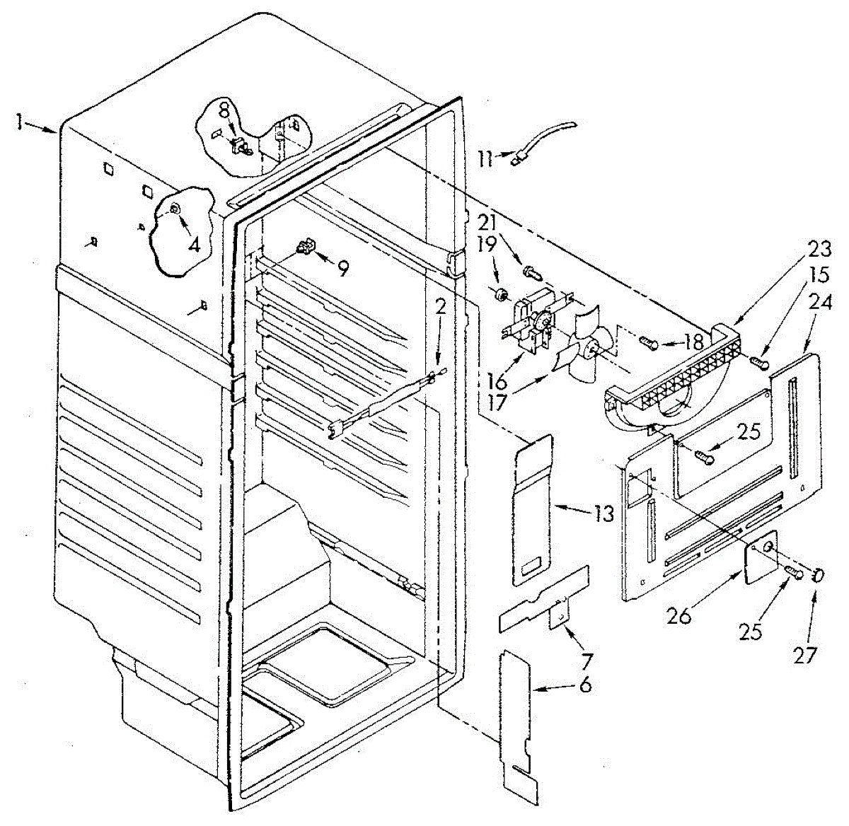 Seals an access opening in the evaporator housing to maintain proper airflow. Replace if cracked, broken, or missing to restore the enclosure seal.