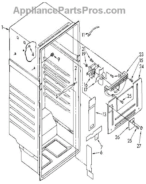 This hole cover seals an access/opening in the refrigerator evaporator housing to help maintain proper airflow and prevent moisture or frost from entering the cabinet. A simple replacement that restores the evaporator enclosure's intended seal. What it does: