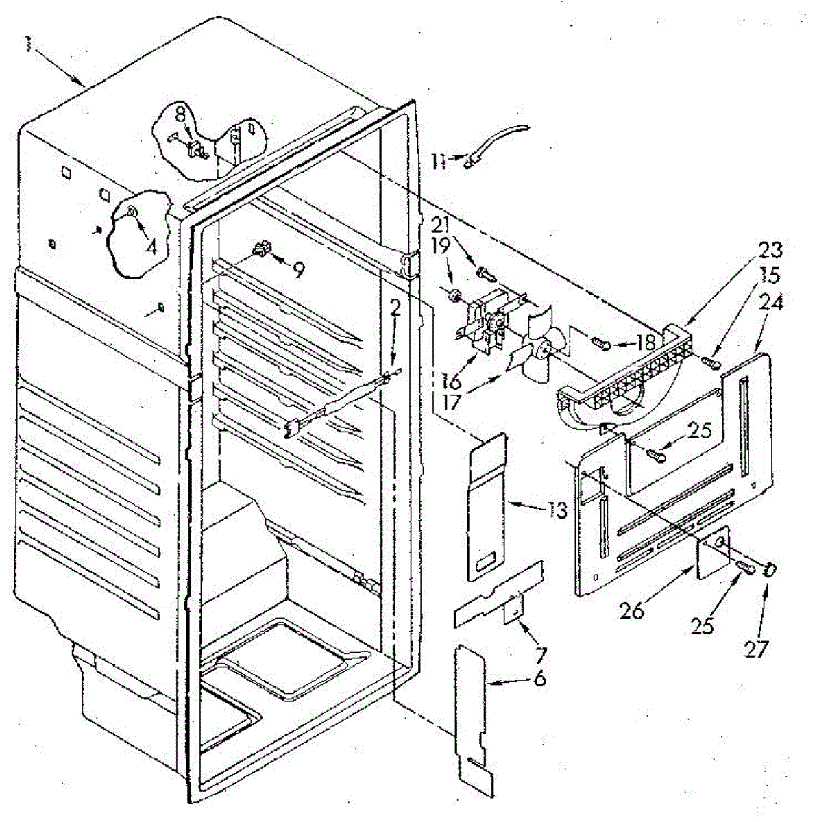 Seals an access opening in the evaporator housing to maintain proper airflow. Replace if cracked, broken, or missing to restore the enclosure seal.