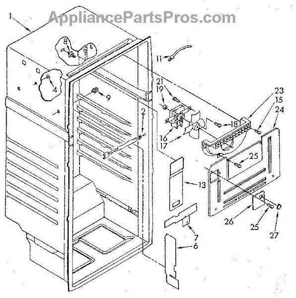 • Anchors and supports a refrigerator shelf or shelf bracket so the shelf sits flush and stable