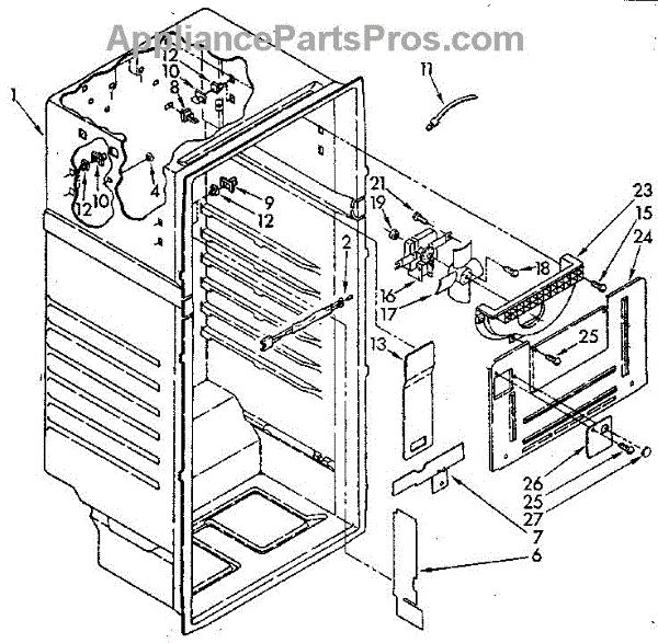 This hole cover seals an access/opening in the refrigerator evaporator housing to help maintain proper airflow and prevent moisture or frost from entering the cabinet. A simple replacement that restores the evaporator enclosure's intended seal. What it does: