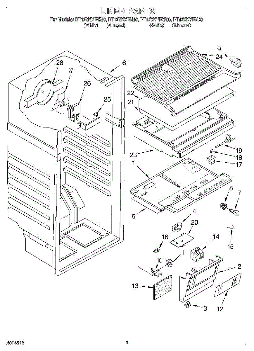 Parts for Roper RT12VKYEW00: 02 - Liner Parts