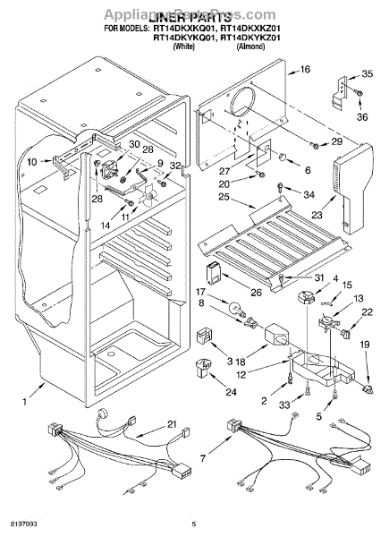 This freezer wire harness links the refrigerator's control system to components inside the freezer compartment. Replacing a compromised harness restores reliable electrical connections and can resolve intermittent or dead freezer functions caused by burned, broken, or corroded wiring.