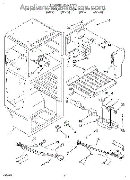 This freezer wire harness links the refrigerator's control system to components inside the freezer compartment. Replacing a compromised harness restores reliable electrical connections and can resolve intermittent or dead freezer functions caused by burned, broken, or corroded wiring.