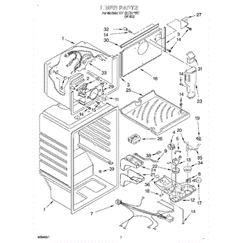 This hole cover seals an access/opening in the refrigerator evaporator housing to help maintain proper airflow and prevent moisture or frost from entering the cabinet. A simple replacement that restores the evaporator enclosure's intended seal. What it does: