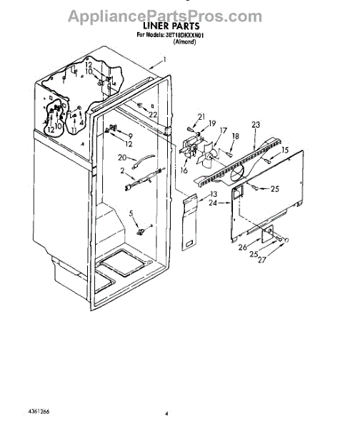 Parts for Whirlpool 3ET18DKXXW01: 03 - Liner Parts