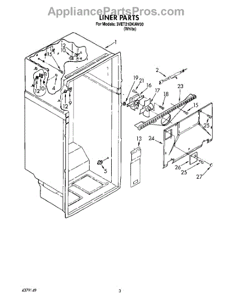 Parts for Whirlpool 3VET21DKAW00: 02 - Liner Parts