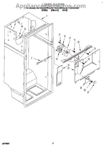 Parts for Whirlpool 8ET18DKXBG00: 02 - Liner Parts