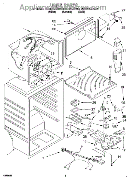 Parts for Whirlpool 8ET18NKXDG00: 03 - Liner Parts