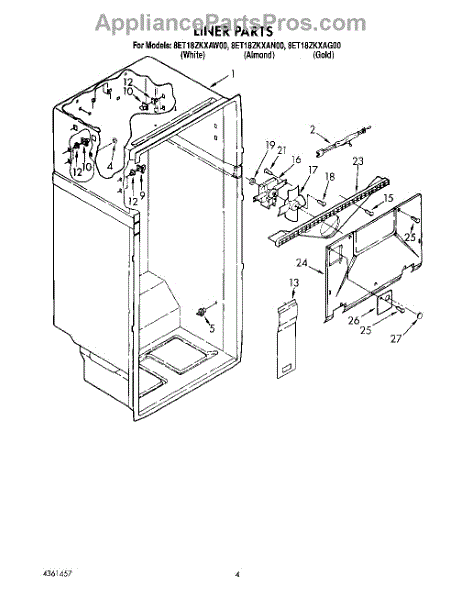 Parts for Whirlpool 8ET18ZKXAN00: 02 - Liner Parts