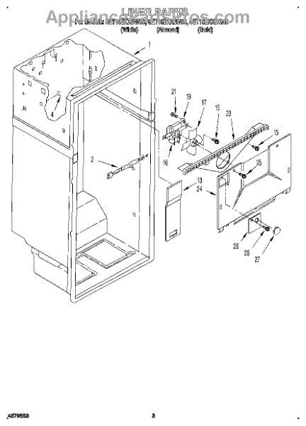 Parts for Whirlpool 8ET18ZKXBG00: 02 - Liner Parts
